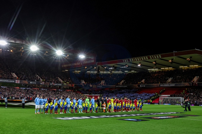 The teams line up before the game during the UEFA Europa League Matchday 5 of 8 Nottingham Forest vs Malmo FF at City Ground, Nottingham, United Kingdom, 27th November 2025, Credit:Mark Cosgrove/News Images / Avalon