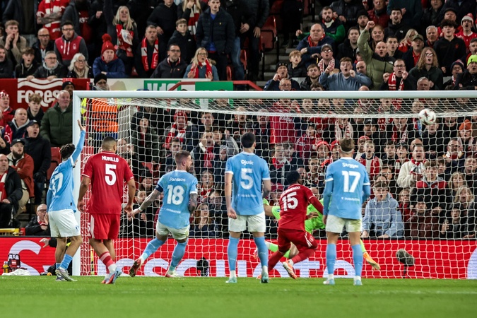 Arnaud Kalimuendo of Nottingham Forest scores to make it 2-0 during the UEFA Europa League Matchday 5 of 8 Nottingham Forest vs Malmo FF at City Ground, Nottingham, United Kingdom, 27th November 2025, Credit:Mark Cosgrove/News Images / Avalon