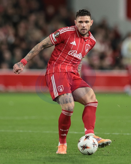 Morato of Nottingham Forest passes the ball during the UEFA Europa League Matchday 5 of 8 Nottingham Forest vs Malmo FF at City Ground, Nottingham, United Kingdom, 27th November 2025, Credit:Mark Cosgrove/News Images / Avalon