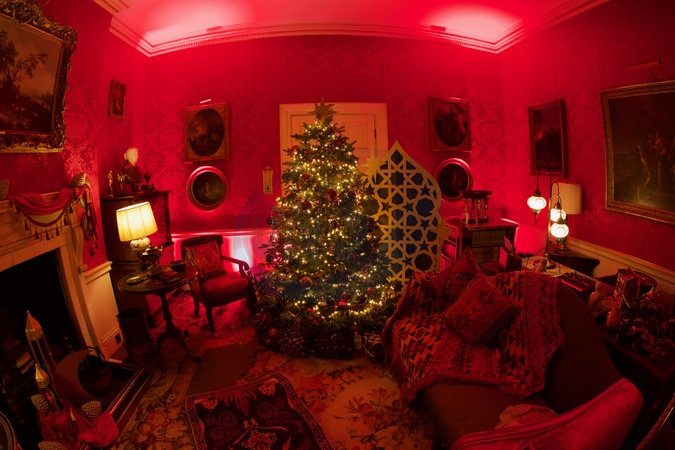 The Aladdin themed room. The beautifully decorated rooms with the themes of pantomimes at Hinton Ampner House in Hampshire. Visitors are invited to join them this Christmas and discover scenes from the most loved pantomimes. Twinkling fairylights shimmer their magic across the beautiful house. Every room of the ground floor features a different, pantomime. Come and bask in the glow of Aladdin's lamp, see Jack's magic beans and a glittering Cinderella slipper, discover Snow White's sumptuous forest feast and marvel at a quilted mountain of mattresses made ready for a sleepy princess. Fe, fi, fo, fum, is that a giant I hear at Hinton Ampner?, Credit:Geoffrey Swaine / Avalon