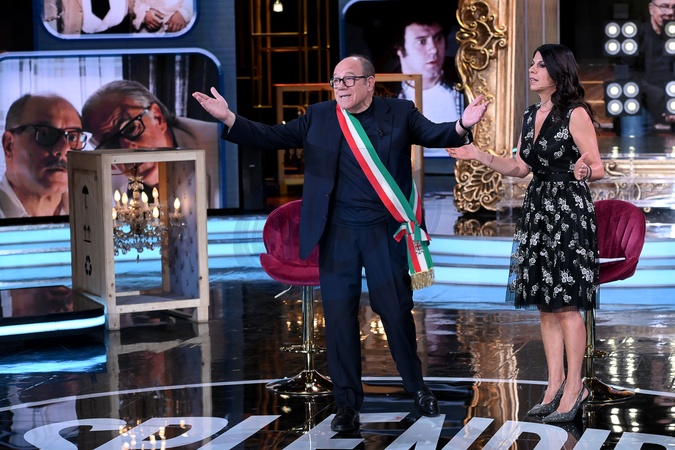 TV show "Splendida Cornice," Rai 3. Pictured: Geppi Cucciari and Carlo Verdone . Roma, Italy 27 November 2025, Credit:AGF / Avalon