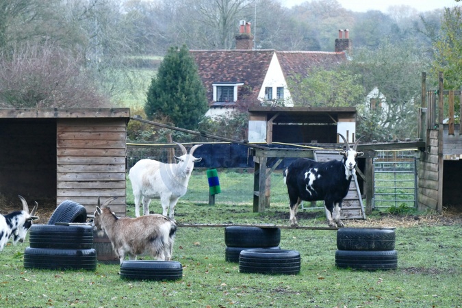 Pygmy goats out on a dull morning in the countryside., Credit:Geoffrey Swaine / Avalon