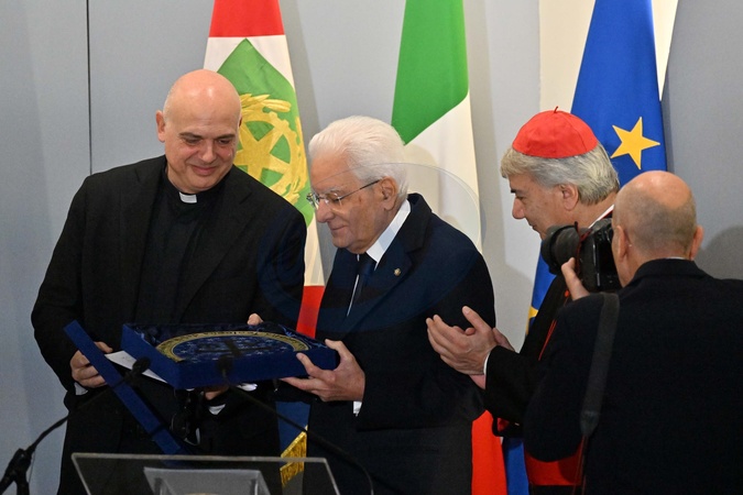 27/11/2025 Napoli, cerimonia di inaugurazione dell'Anno accademico 2025/2026 della Pontificia Universita' Teologica dell'Italia Meridionale. Nella foto: Don Mimmo Battaglia e Sergio Mattarella, Credit:Felice De Martino / Avalon