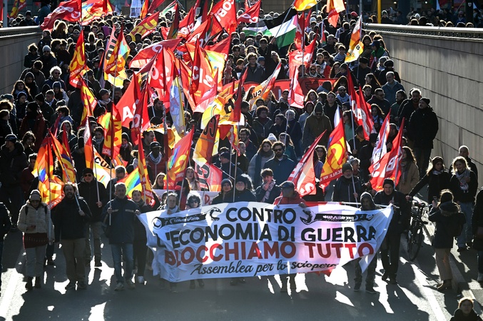 Unicobas union strikes against the budget and for Palestine . Florence, Italy 28 November 2025, Credit:Aleandro Biagianti / Avalon