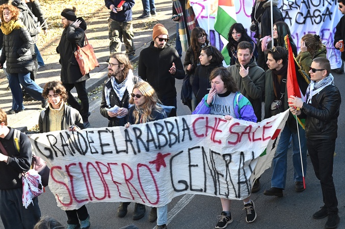 Unicobas union strikes against the budget and for Palestine . Florence, Italy 28 November 2025, Credit:Aleandro Biagianti / Avalon