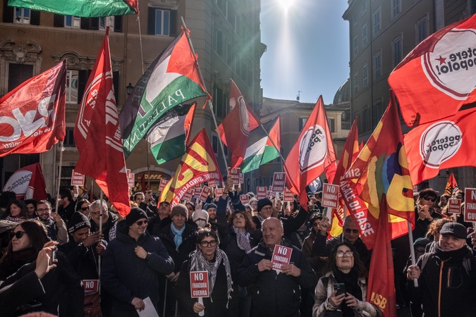 Presidium at Montecitorio following the general strike against the war budget .Rome, Italy 28 November 2025, Credit:Francesca Bolla / Avalon
