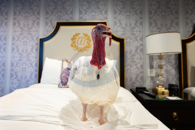 The 2025 Presidential Turkeys, named Gobble and Waddle, arrive at the Willard InterContinental Hotel in Washington, D.C., on Sunday, November 24, 2025., Credit:Andrea Hanks / Avalon