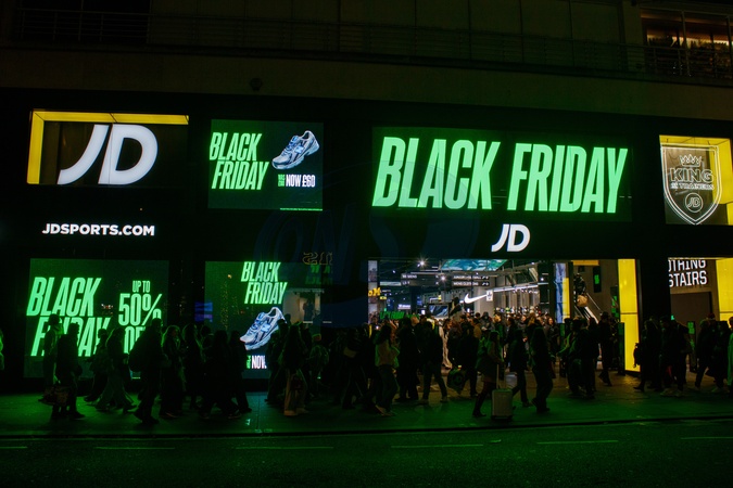Oxford Street on Black Friday. Shoppers and signs can be seen on one of the busiest days of the year, London, UK, 28 November 2025, Credit:Alex Day / Avalon