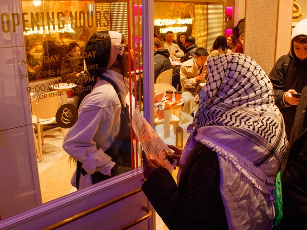 Palestine protesters from a range of groups, most notably Palestine Pulse target "Zionist" shops in and around Oxford Street during Black Friday, London, UK, 28 November 2025, Credit:Alex Day / Avalon