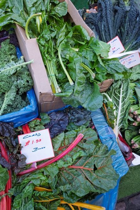 Chard and green vegetables on Cambridge market and stalls.Cambridge, Cambridgeshire. United Kingdom. 28 November 2025, Credit:Mark Fairhurst / Avalon