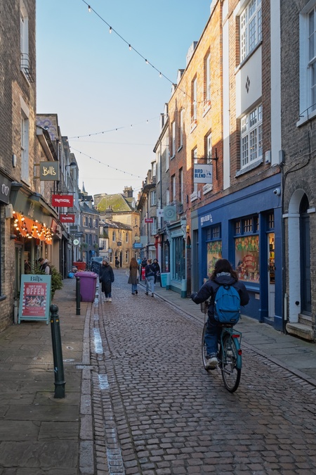 Green street a pleasant cobbled street in Cambridge with many independent shops. Cambridge, Cambridgeshire. United Kingdom. 28 November 2025, Credit:Mark Fairhurst / Avalon