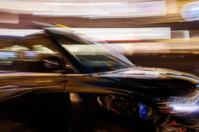 A London black cab driving through Oxford Street, London, UK, 28 November 2025, Credit:Alex Day / Avalon
