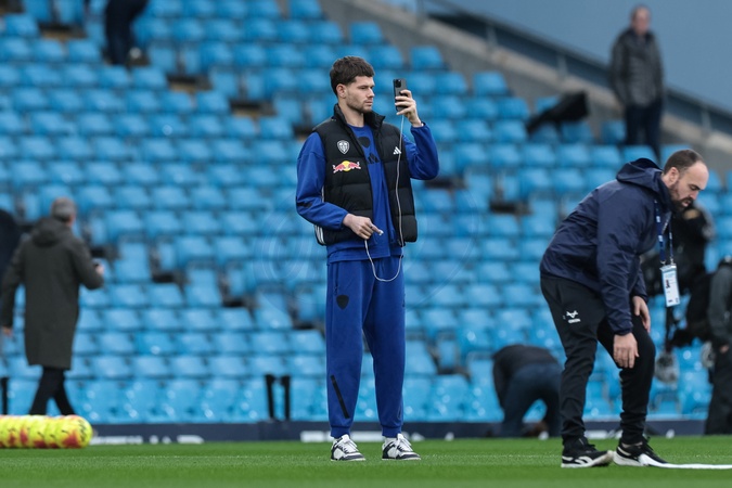 Leeds United goalkeeper Illan Meslier arrives during the Premier League match Manchester City vs Leeds United at Etihad Stadium, Manchester, United Kingdom, 29th November 2025, Credit:Mark Cosgrove/News Images / Avalon