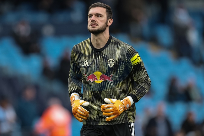 Leeds United goalkeeper Lucas Perri in the pregame warmup session during the Premier League match Manchester City vs Leeds United at Etihad Stadium, Manchester, United Kingdom, 29th November 2025, Credit:Mark Cosgrove/News Images / Avalon