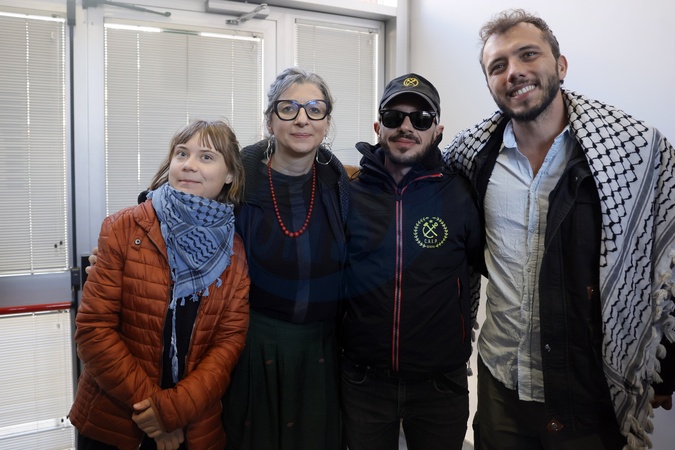 "Rebuild Justice," an event organized by the Global Movement to Gaza on the occasion of the International Day of Solidarity with the Palestinian People. Pictured are Greta Thunberg, Francesca Albanese, and Thiago Ávila. Rome, Italy 29 November 2025, Credit:Francesco Fotia / Avalon