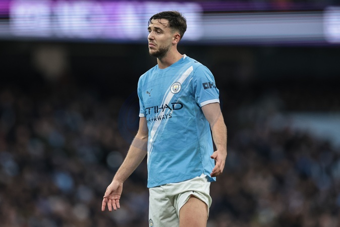 Nico Gonzalez of Manchester City during the Premier League match Manchester City vs Leeds United at Etihad Stadium, Manchester, United Kingdom, 29th November 2025, Credit:Mark Cosgrove/News Images / Avalon