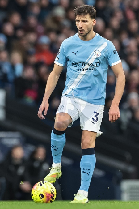 Ruben Dias of Manchester City with the ball during the Premier League match Manchester City vs Leeds United at Etihad Stadium, Manchester, United Kingdom, 29th November 2025, Credit:Mark Cosgrove/News Images / Avalon