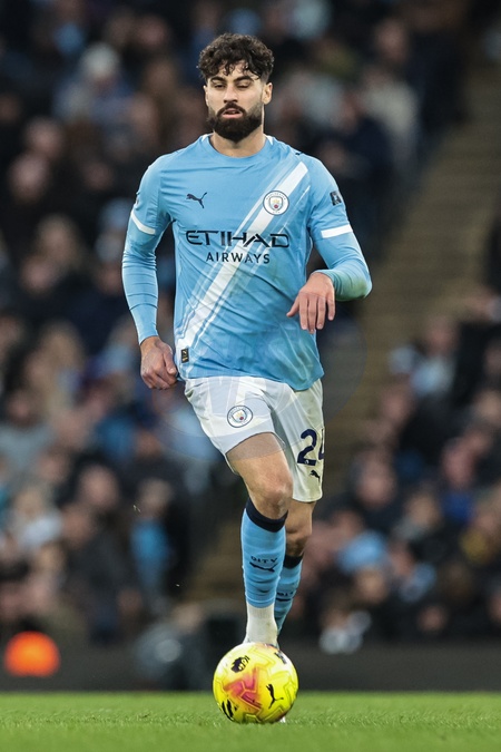 Josko Gvardiol of Manchester City with the ball during the Premier League match Manchester City vs Leeds United at Etihad Stadium, Manchester, United Kingdom, 29th November 2025, Credit:Mark Cosgrove/News Images / Avalon