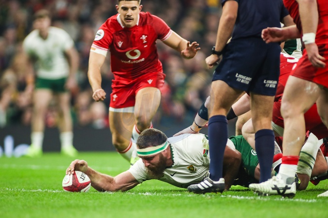 Gerhard Steenekamp of South Africa sores his teams first try during the Quilter Nations Series 2025 match Wales vs South Africa at Principality Stadium, Cardiff, United Kingdom, 29th November 2025, Credit:Andrew Lewis/News Images / Avalon