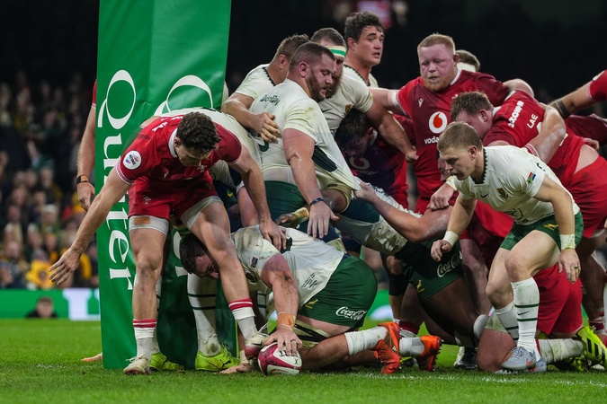Jasper Wiese of South Africa scores a try for his team during the Quilter Nations Series 2025 match Wales vs South Africa at Principality Stadium, Cardiff, United Kingdom, 29th November 2025, Credit:Andrew Lewis/News Images / Avalon