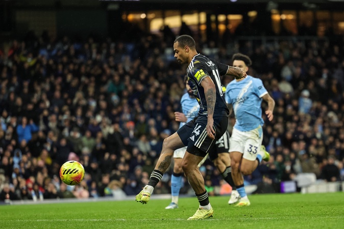 Lukas Nmecha of Leeds United scores to make it 2-2 during the Premier League match Manchester City vs Leeds United at Etihad Stadium, Manchester, United Kingdom, 29th November 2025, Credit:Mark Cosgrove/News Images / Avalon