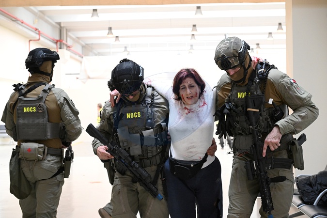 Counterterrorism exercise featuring simulated police and civil defense operations with the support of the Red Cross to test the response of hospitals in the capital.
