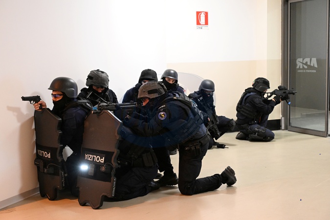 Leonardo Da Vinci Airport. Counterterrorism exercise with simulated police and civil defense operations, supported by the Italian Red Cross, to test the response of the capital's hospitals. Pictured is the special police unit. Fiumicino, Italy 29 November 2025, Credit:Maria Laura Antonelli / Avalon