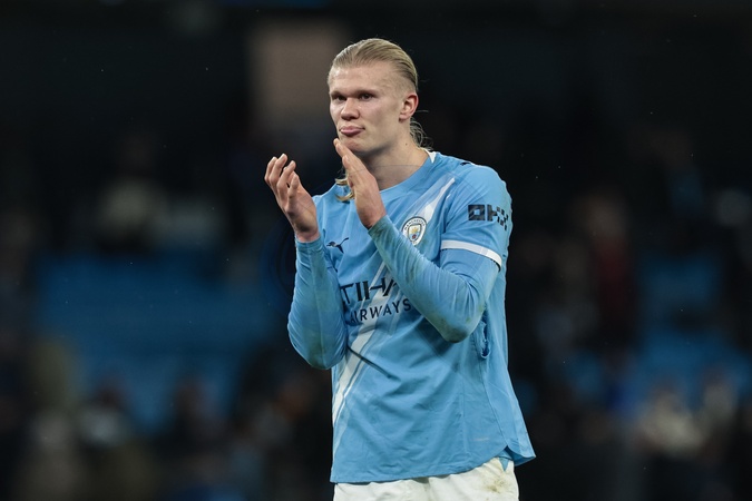 Erling Haaland of Manchester City applauds the fans after the final whistle during the Premier League match Manchester City vs Leeds United at Etihad Stadium, Manchester, United Kingdom, 29th November 2025, Credit:Mark Cosgrove/News Images / Avalon