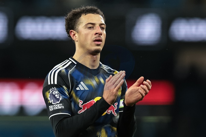 Ethan Ampadu of Leeds United applauds the fans after the final whistle during the Premier League match Manchester City vs Leeds United at Etihad Stadium, Manchester, United Kingdom, 29th November 2025, Credit:Mark Cosgrove/News Images / Avalon