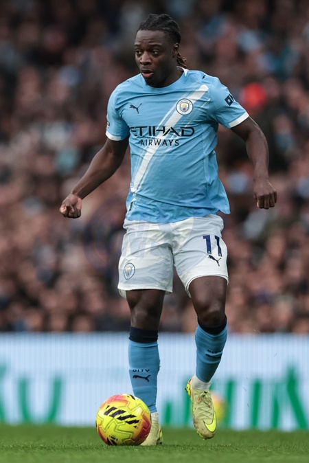 Jeremy Doku of Manchester City breaks with the ball during the Premier League match Manchester City vs Leeds United at Etihad Stadium, Manchester, United Kingdom, 29th November 2025, Credit:Mark Cosgrove/News Images / Avalon