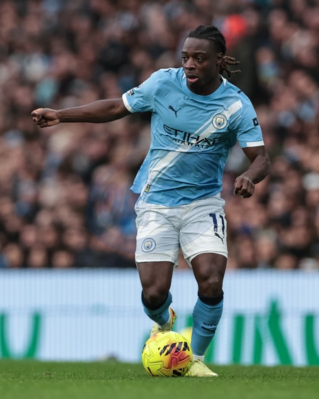 Jeremy Doku of Manchester City breaks with the ball during the Premier League match Manchester City vs Leeds United at Etihad Stadium, Manchester, United Kingdom, 29th November 2025, Credit:Mark Cosgrove/News Images / Avalon