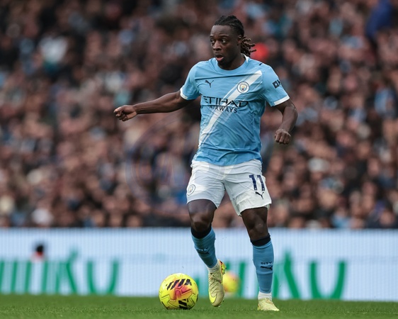 Jeremy Doku of Manchester City breaks with the ball during the Premier League match Manchester City vs Leeds United at Etihad Stadium, Manchester, United Kingdom, 29th November 2025, Credit:Mark Cosgrove/News Images / Avalon