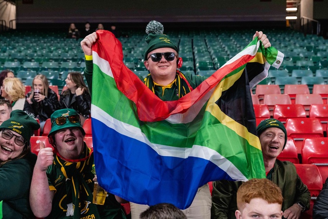 South African fans during the Quilter Nations Series 2025 match Wales vs South Africa at Principality Stadium, Cardiff, United Kingdom, 29th November 2025, Credit:Andrew Lewis/News Images / Avalon