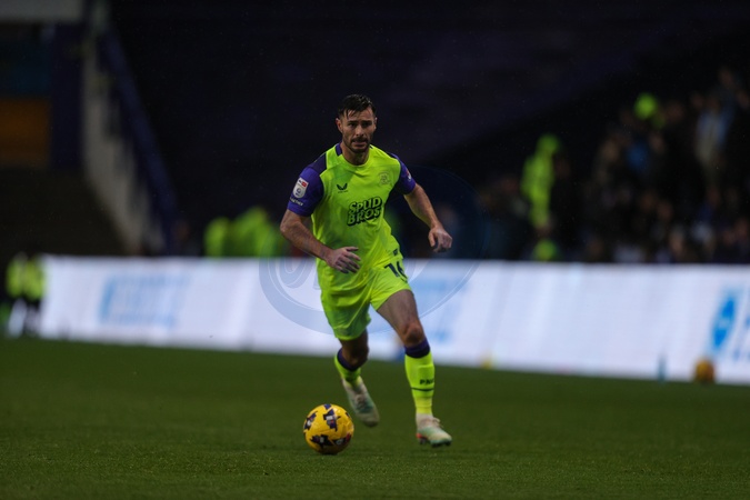 Andrew Hughes of Preston North End breaks with the ball during the Sky Bet Championship match Sheffield Wednesday vs Preston North End at Hillsborough, Sheffield, United Kingdom, 29th November 2025, Credit:Richard Bierton/News Images / Avalon