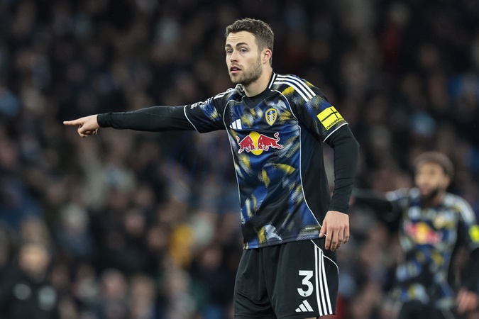 Gabriel Gudmundsson of Leeds United gives his team instructions during the Premier League match Manchester City vs Leeds United at Etihad Stadium, Manchester, United Kingdom, 29th November 2025, Credit:Mark Cosgrove/News Images / Avalon