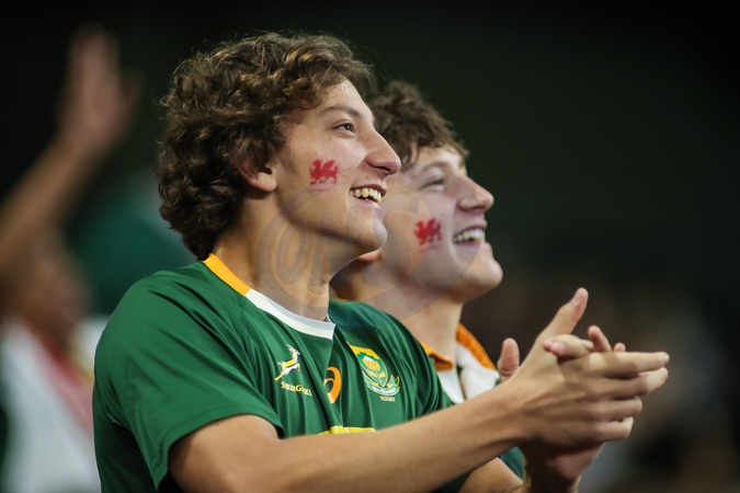 South African fans celebrate during the Quilter Nations Series 2025 match Wales vs South Africa at Principality Stadium, Cardiff, United Kingdom, 29th November 2025, Credit:Andrew Lewis/News Images / Avalon