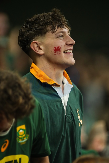 South African fans celebrate during the Quilter Nations Series 2025 match Wales vs South Africa at Principality Stadium, Cardiff, United Kingdom, 29th November 2025, Credit:Andrew Lewis/News Images / Avalon