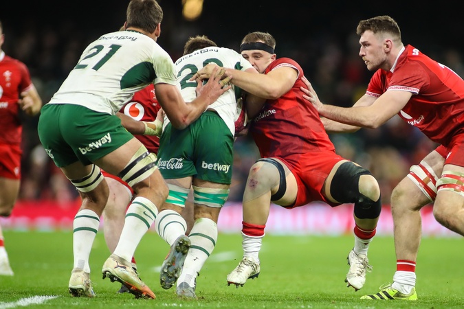 Kwagga Smith of South Africa is tackled by Morgan Morse of Wales during the Quilter Nations Series 2025 match Wales vs South Africa at Principality Stadium, Cardiff, United Kingdom, 29th November 2025, Credit:Andrew Lewis/News Images / Avalon
