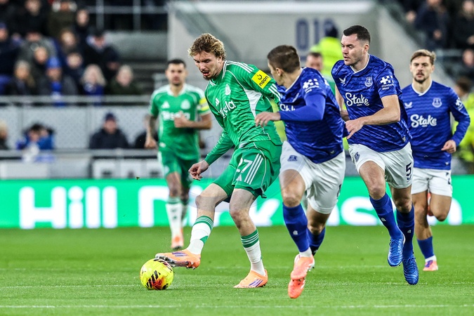 Nick Woltemade of Newcastle United passes the ball during the Premier League match Everton vs Newcastle United at Hill Dickinson Stadium, Liverpool, United Kingdom, 29th November 2025, Credit:Ae Cosgrove/News Images / Avalon