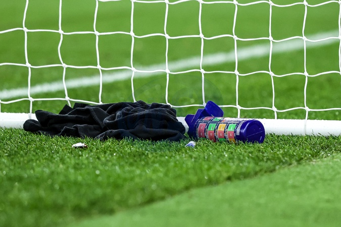 The bottle of Everton goalkeeper Jordan Pickford displays the chances of each players penalties during the Premier League match Everton vs Newcastle United at Hill Dickinson Stadium, Liverpool, United Kingdom, 29th November 2025, Credit:Ae Cosgrove/News Images / Avalon