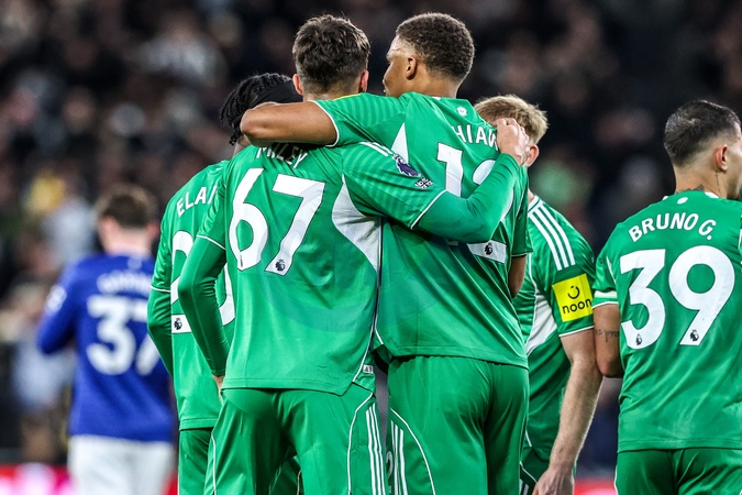 Lewis Miley of Newcastle United celebrates his goal to make it 0-2 during the Premier League match Everton vs Newcastle United at Hill Dickinson Stadium, Liverpool, United Kingdom, 29th November 2025, Credit:Ae Cosgrove/News Images / Avalon