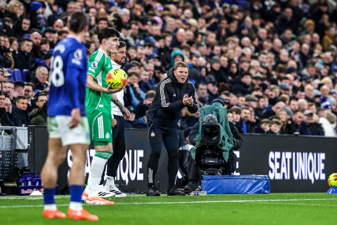 Eddie Howe manager of Newcastle United gives his team instructions during the Premier League match Everton vs Newcastle United at Hill Dickinson Stadium, Liverpool, United Kingdom, 29th November 2025, Credit:Ae Cosgrove/News Images / Avalon