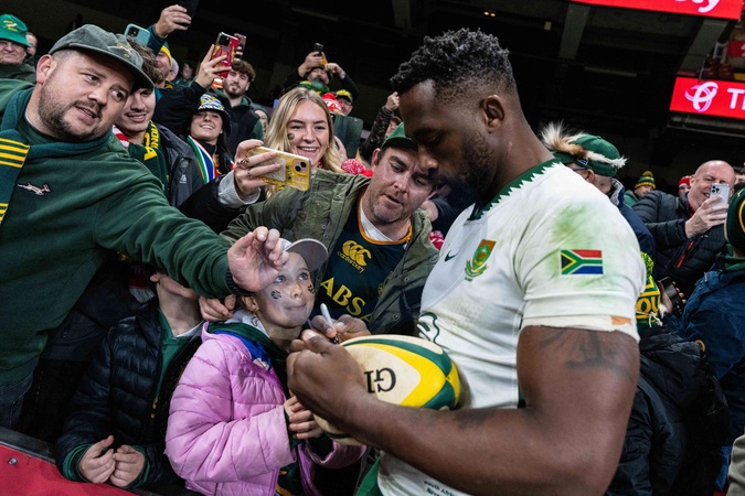 Siya Kolisi of South Africa signs autographs during the Quilter Nations Series 2025 match Wales vs South Africa at Principality Stadium, Cardiff, United Kingdom, 29th November 2025, Credit:Andrew Lewis/News Images / Avalon