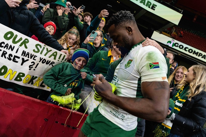 Siya Kolisi of South Africa signs autographs during the Quilter Nations Series 2025 match Wales vs South Africa at Principality Stadium, Cardiff, United Kingdom, 29th November 2025, Credit:Andrew Lewis/News Images / Avalon