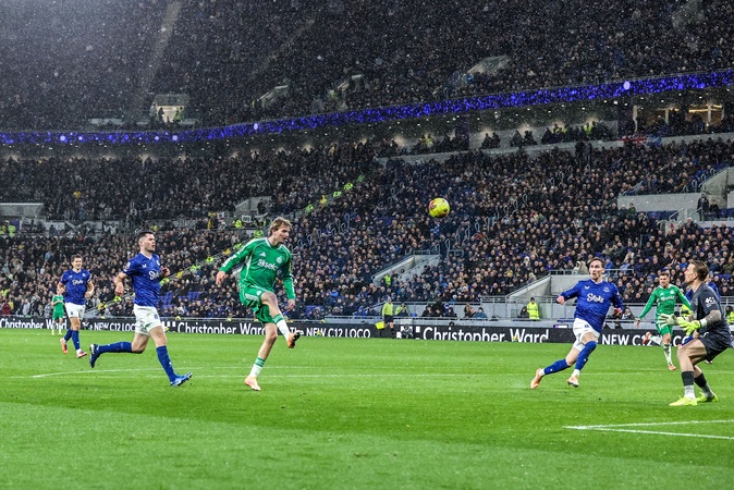 Nick Woltemade of Newcastle United scores to make it 0-3 during the Premier League match Everton vs Newcastle United at Hill Dickinson Stadium, Liverpool, United Kingdom, 29th November 2025, Credit:Ae Cosgrove/News Images / Avalon