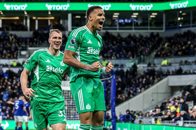 Malick Thiaw of Newcastle United celebrates his goal to make it 0-4 during the Premier League match Everton vs Newcastle United at Hill Dickinson Stadium, Liverpool, United Kingdom, 29th November 2025, Credit:Ae Cosgrove/News Images / Avalon