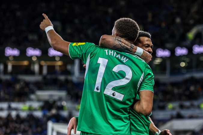 Malick Thiaw of Newcastle United celebrates his goal to make it 0-4 during the Premier League match Everton vs Newcastle United at Hill Dickinson Stadium, Liverpool, United Kingdom, 29th November 2025, Credit:Ae Cosgrove/News Images / Avalon