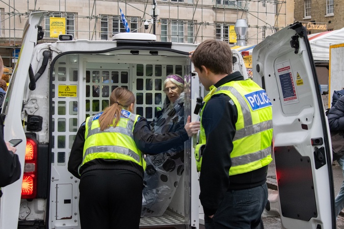 Cambridge, UK, 29th November 2025 - Defend Our Juries protestors arrested in Cambridge as they show support for the proscriped organisation, Palestine Action, as a part of the groups "Lift The Ban" campaign, a campaign calling for the de-proscription of Palestine Action,., Credit:Will Colebourne / Avalon