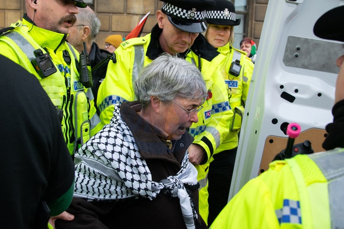 Cambridge, UK, 29th November 2025 - Defend Our Juries protestors arrested in Cambridge as they show support for the proscriped organisation, Palestine Action, as a part of the groups "Lift The Ban" campaign, a campaign calling for the de-proscription of Palestine Action,., Credit:Will Colebourne / Avalon
