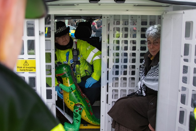 Cambridge, UK, 29th November 2025 - Defend Our Juries protestors arrested in Cambridge as they show support for the proscriped organisation, Palestine Action, as a part of the groups "Lift The Ban" campaign, a campaign calling for the de-proscription of Palestine Action,., Credit:Will Colebourne / Avalon